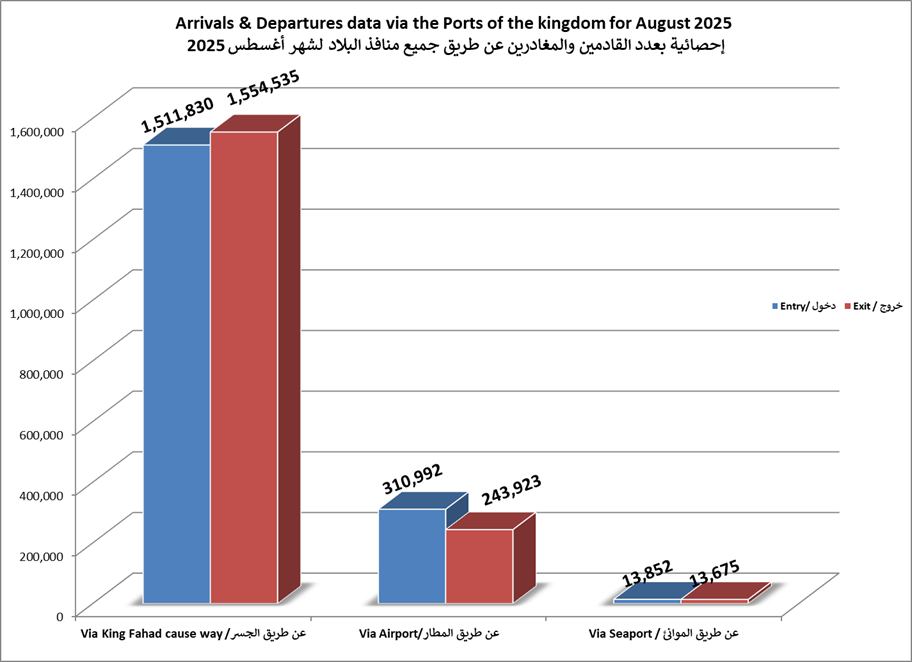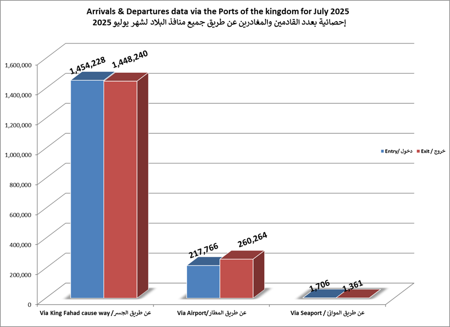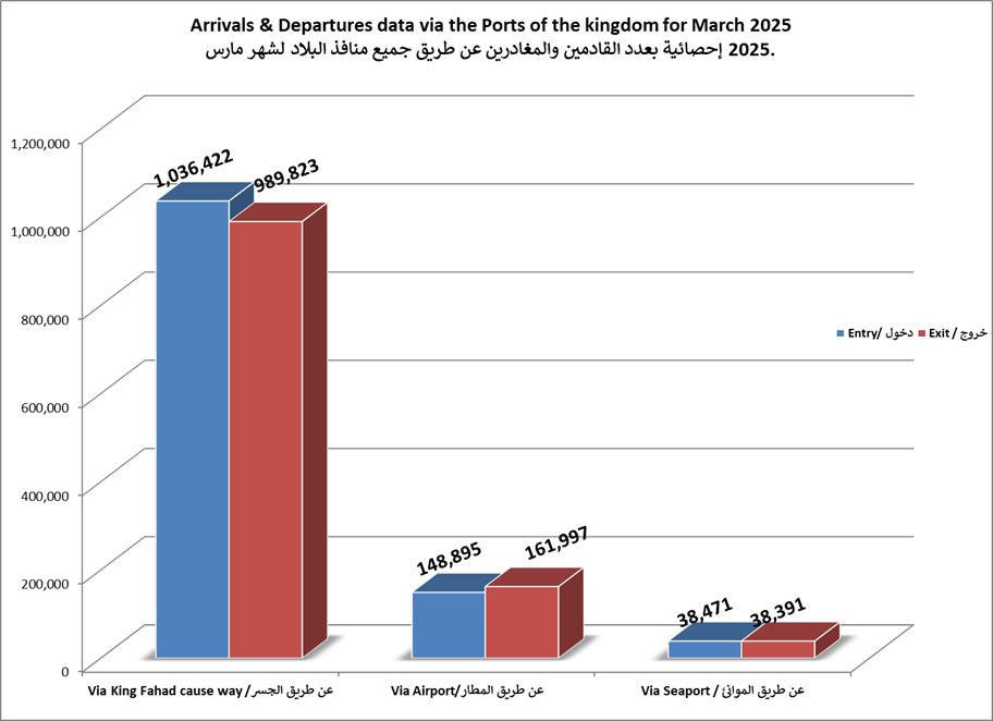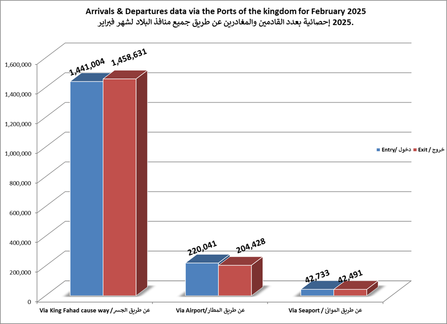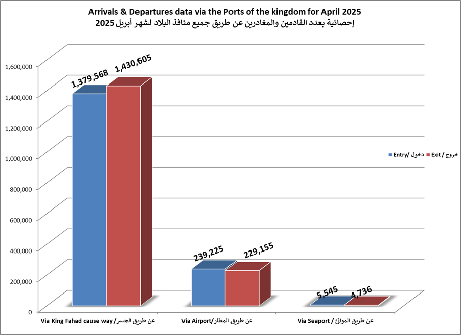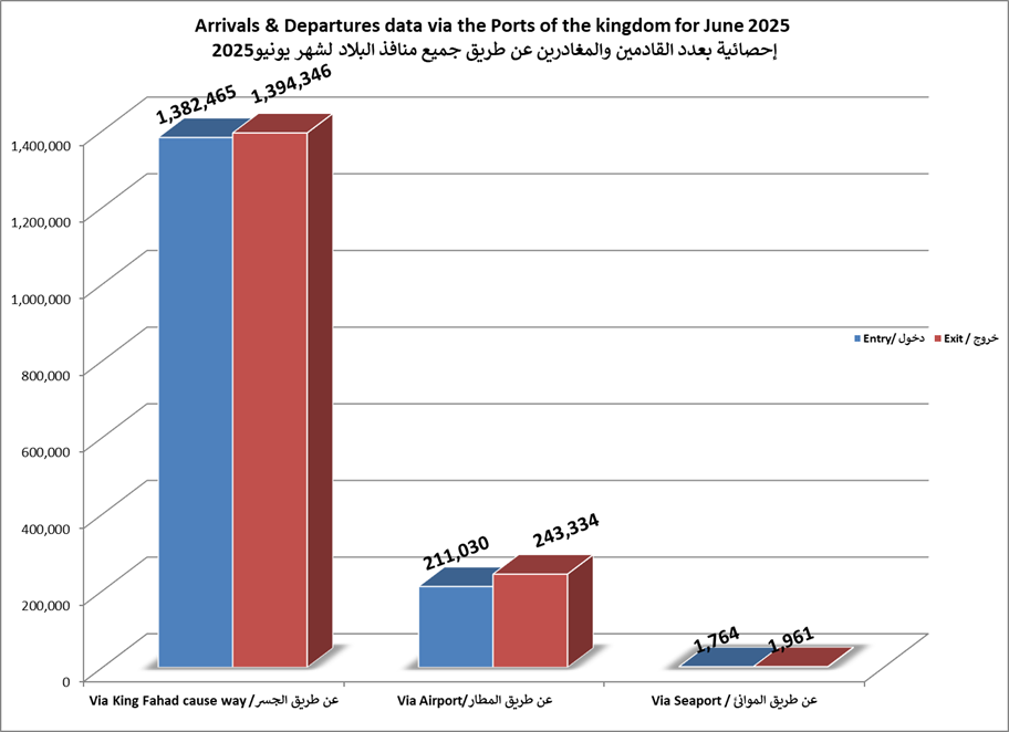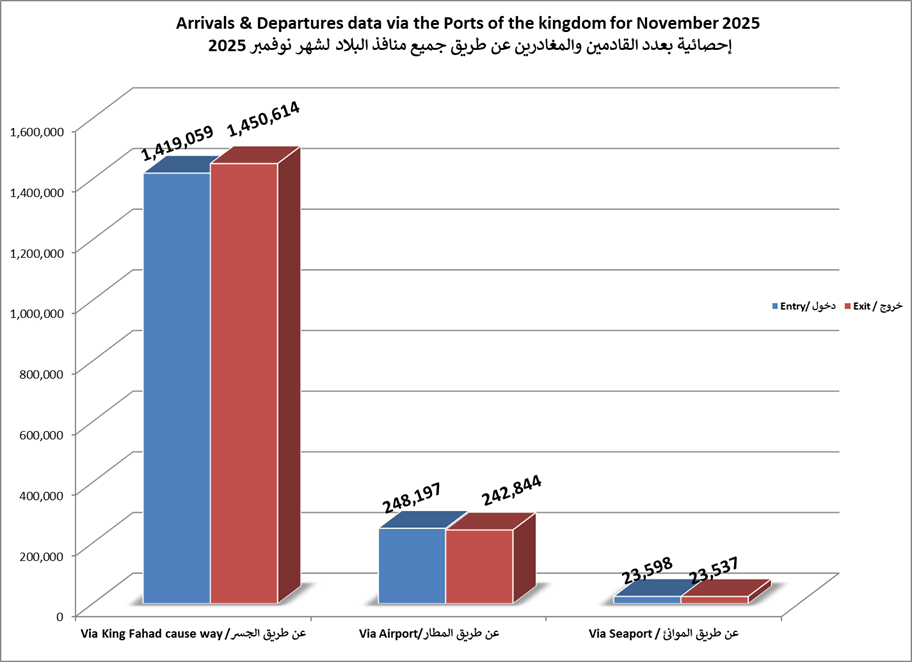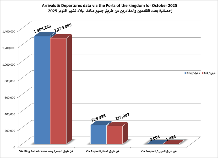الاحصائيات الشهرية لحركة المسافرين عبر جميع منافذ البلاد لعام 2025